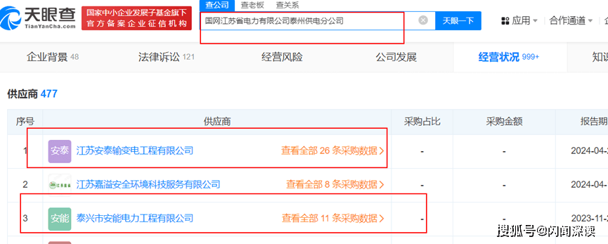 事实上,和国网江苏省电力有限公司泰州供电分公司之间有11条采购数据的泰兴市安能电力工程有限公司,两者的关系也“非同一般”。
