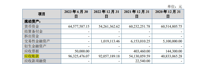 报告期内,公司应收账款账面价值分别为4083.31万元、5413.01万元、9205.72万元、9632.55万元,占当期期末流动资产总额的比例分别为29.47%、34.84%、54.39%、51.07%,2022年应收账款增幅较大,目前超50%的占比也较高。