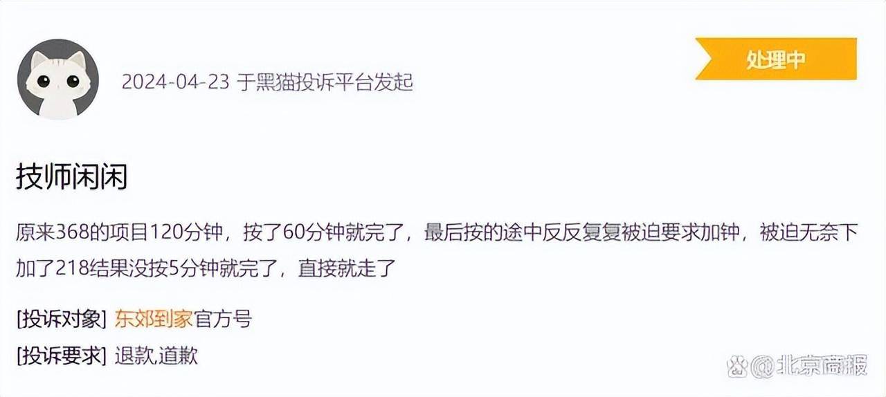 而就在今年“315”期间,因“涉黄加钟”“不加钟就不提供服务”等问题,东郊到家被多家媒体点名。
