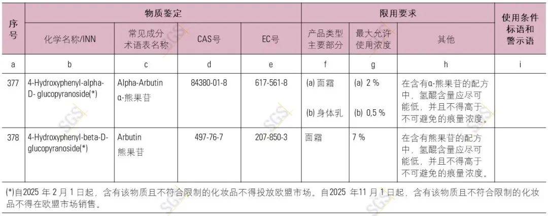 根据上述意见,今年4月,欧盟化妆品法规最新修订内容发布,将α-熊果苷、熊果苷列入化妆品限用物质清单。不符合新规的化妆品,自2025年2月1日起不得在欧盟市场上市,自2025年11月1日起不得在欧盟市场上销售。