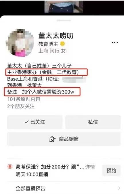 看到这样的课程简介,你会心动吗?该标语来自“精英教育”博主董太太的教育规划课。董太太在抖音坐拥超过257万粉丝,号称“影响十万个家庭”。有人评价称,“董太太和张雪峰各自为两个世界的孩子服务,两个世界互不交流”。