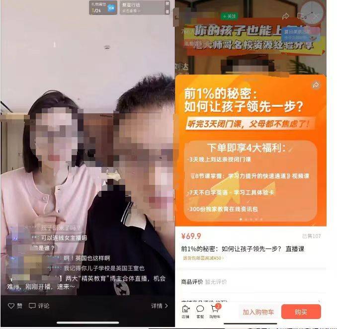 董太太该账号的主要变现方式是知识付费和带货其他机构的课程。与各类名人攀谈的背书,结合直播间营造的教育焦虑,许多家长就这样满怀期待地下了单。