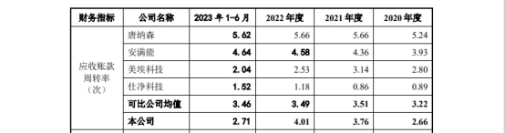 同时,应收账款的增长也令公司的应收账款周转率出现一定程度的下滑,2023年上半年公司的应收账款周转率从4.01下滑至2.71,并且还低于同行业可比公司的均值3.46。值得注意的是,在招股书中,汇乐技术并没有在招股书中解释2023年上半年自身应收账款周转率下滑的原因,对于这一点,汇乐技术应当进行进一步分析。