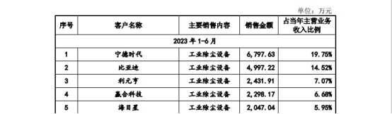 汇乐技术也因此搭上行业顺风车,与宁德时代(300750)、比亚迪(002594)、亿纬锂能(300014)等锂电池行业的龙头企业展开了合作。汇乐技术主要向客户们提供工业除尘设备、滤芯及防爆部件、技术服务等。