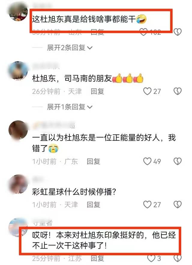 此事一经曝光,杜旭东的评论区瞬间被愤怒的网友淹没。