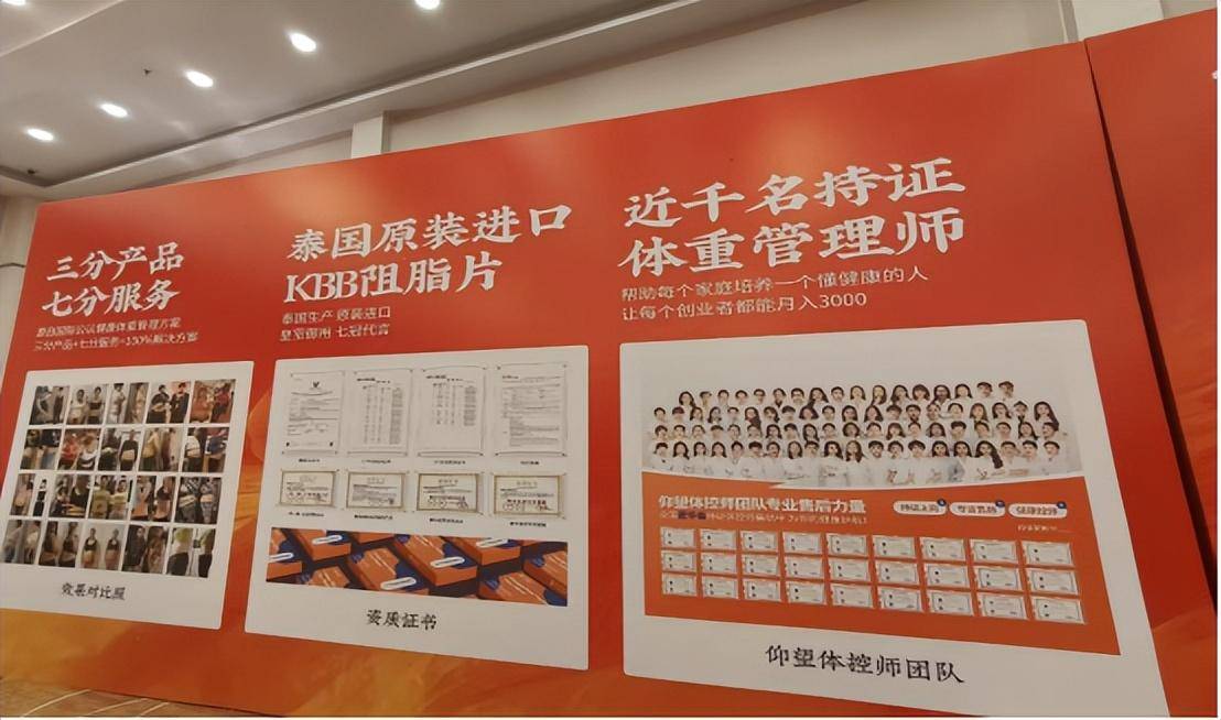 在会议现场联合创始人孟某称,“吃好、吃饱还能瘦,不节食,不忌碳水,阻脂阻碳阻糖,还能燃烧脂肪”。