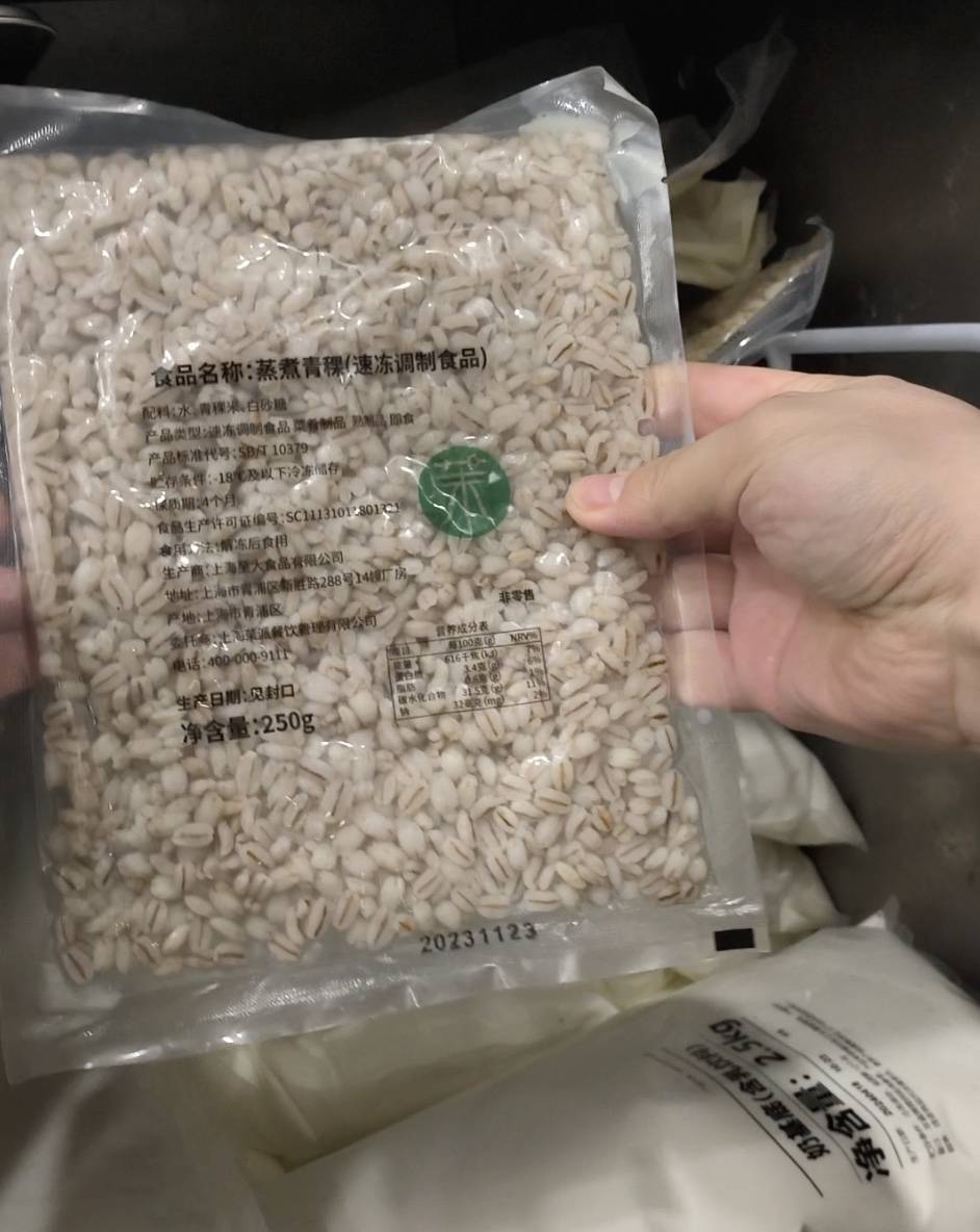 20时许,有消费者下单5杯加青稞的奶昔。见盒子里的过期青稞已所剩无几,该店的店长助理让记者从后区冷柜取出一袋青稞。拆封后,记者发现这袋青稞也已经过期40余天,便告诉店长助理。