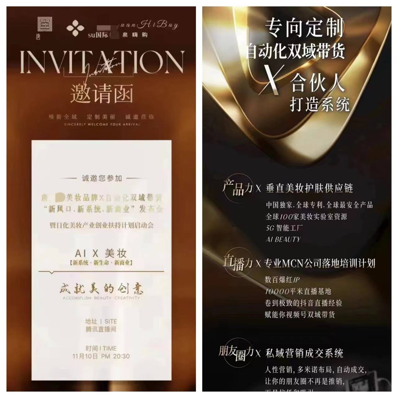 今年三月,孙先生经朋友介绍参与了一个名为“SU国际”的平台,项目负责人眭某表示该平台是与厦门唐某某美容有限公司达成合作后,借助数字经济新型消费商模式成立的线上商城。