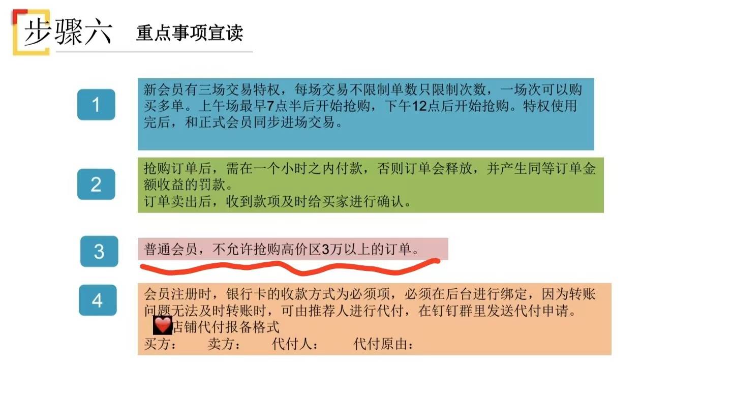 因此,平台规定每天上午9点30分和下午3点30分各有两场交易,vip会员可比普通会员提前一小时入场。其中新会员前三天也可以提前入场,且订单数不限。