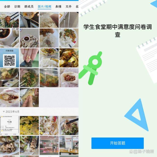 记者从多张图片中观察到,里面大多是关于菜品里出现小虫、毛发以及不明异物的投诉。值得一提的是,食堂5月份还曾在群里发布过学生食堂问卷满意度调查。