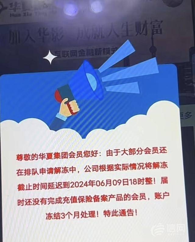 带着美好的梦想,王先生等待了一个月,然而到6月8日,王先生却发现华夏影视平台登陆页面提示自己的会员账号被冻结。想要申请排队解封需要充值8000元购买保险备案产品,否则账户将被冻结3个月。此时,王先生想起了当初推荐自己投资的张先生,但对方的电话已经无法拨通。