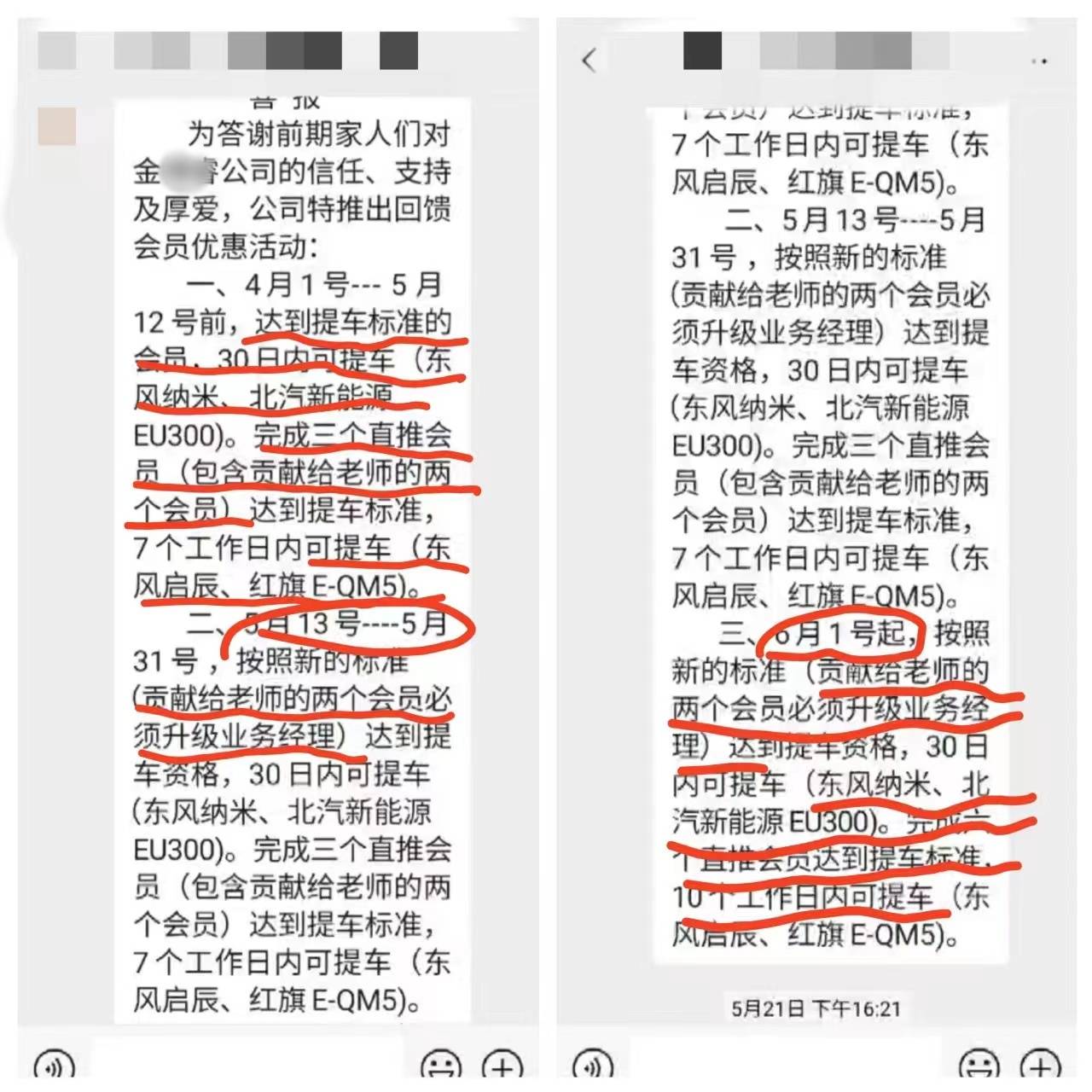 既能赚钱还白送新车?“金某睿”不断变更合同 众会员要求退款