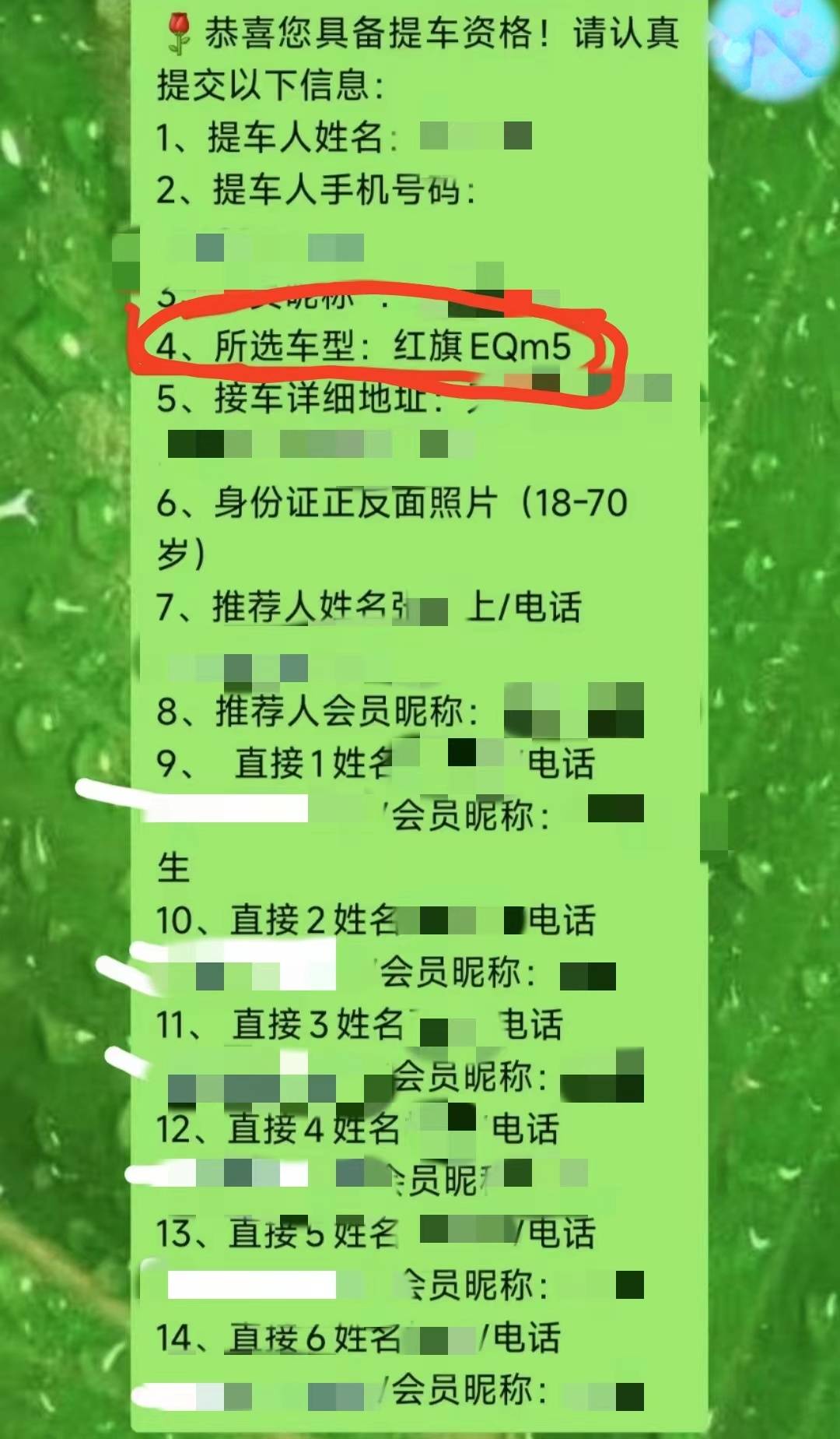 “本来承诺的只要推广6个人就可以,后来又告诉我想要红旗还需要在推广的前两个人下面再推广两个人……”