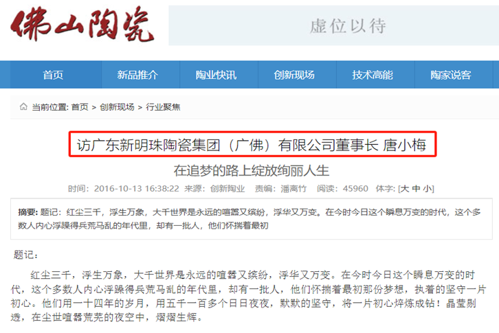 更何况,力场君还查阅到一些公开报道,在2016年,唐小梅还以“广东新明珠陶瓷集团(广佛)有限公司董事长”的身份参与社会活动和新闻报道,这更与《审核问询函的回复》中披露的、其早在“2004年离职创业”的信息,存在重大出入。这不值得怀疑吗?新明珠连同保荐机构申万宏源证券,不该出来说清楚一下吗?
