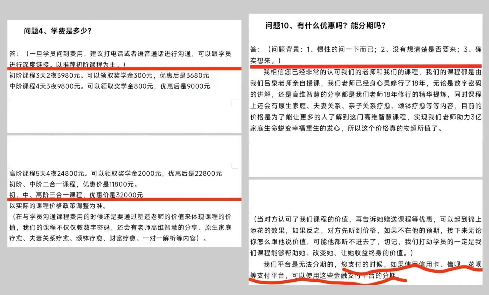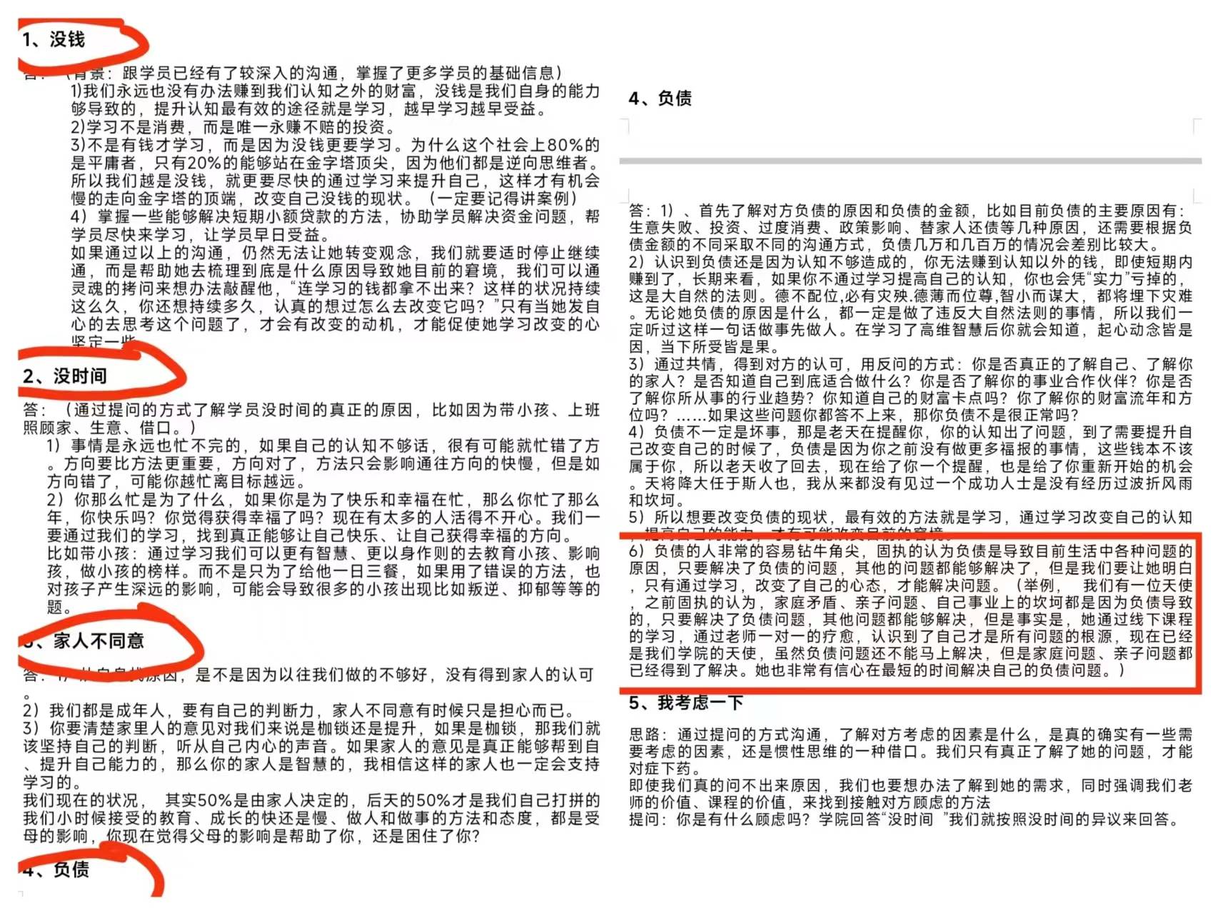 令张先生更加难以接受的是,对于一些没有钱的学员,学院有一套完整的“话术”流程,一步步指导老学员如何“纳新”。