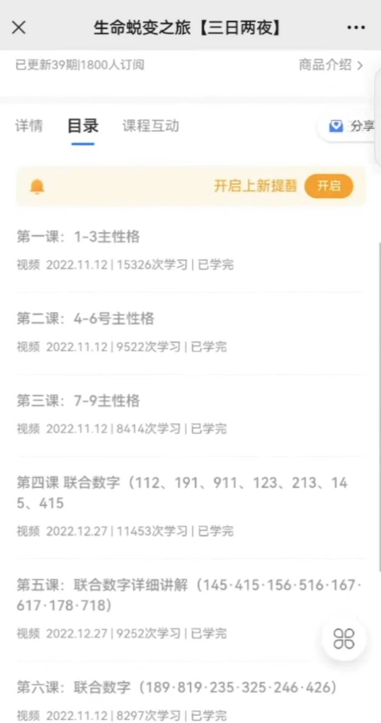 张先生介绍称,这个灵修课程主要以“生命数字密码”、“财富密码”、“高维能量生命之旅”等内容,号称可以让学员认识自己、了解他人、掌握财富,唤醒生命高频能量,创始人“吕某”经常在直播中宣称每个人都有自己的“命盘”和“心图”,了解自己的“生命数字密码”就能够解决生活中的各种问题。