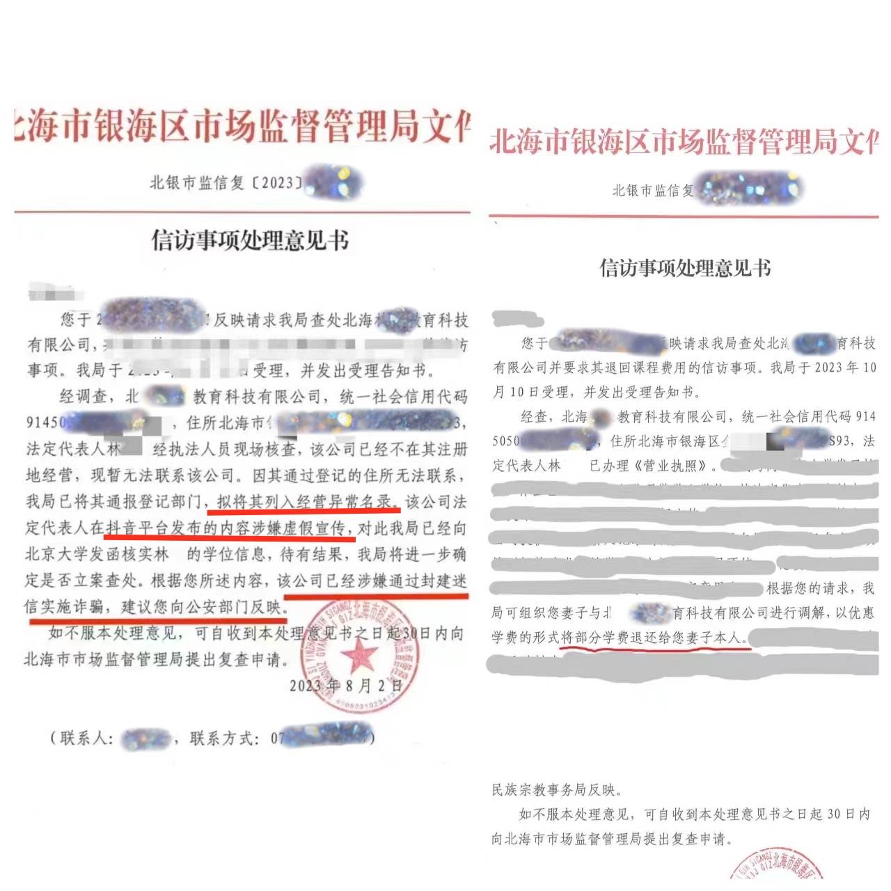 2023年8月,“林某”被北海市银海区市场监督管理局认定虚假宣传,涉嫌通过封建迷信实施诈骗,“林某”的名校学历也在被调查当中。