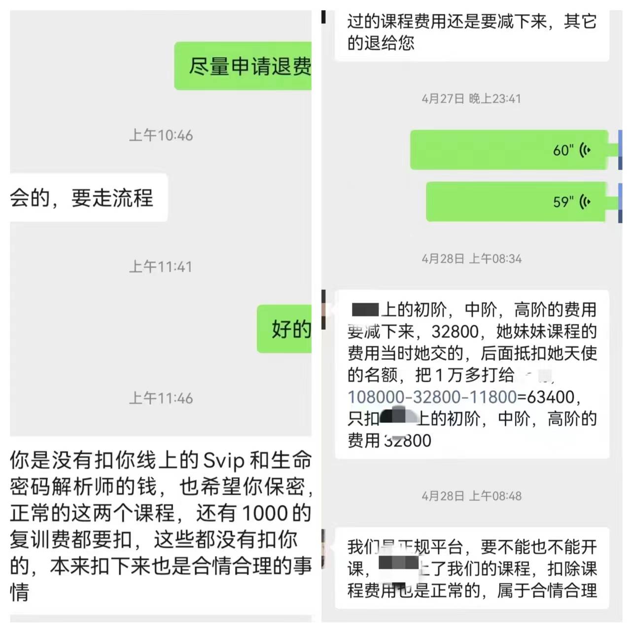 张先生反映自己的女友在短视频平台上参与了一个名为“某泉高维智慧学院”的灵修课程。在明知女友负债的情况下,还诱导女友交纳高昂学费参与课程,以至于没有收入的女友竟然为了这个课程前前后后花费108000元。