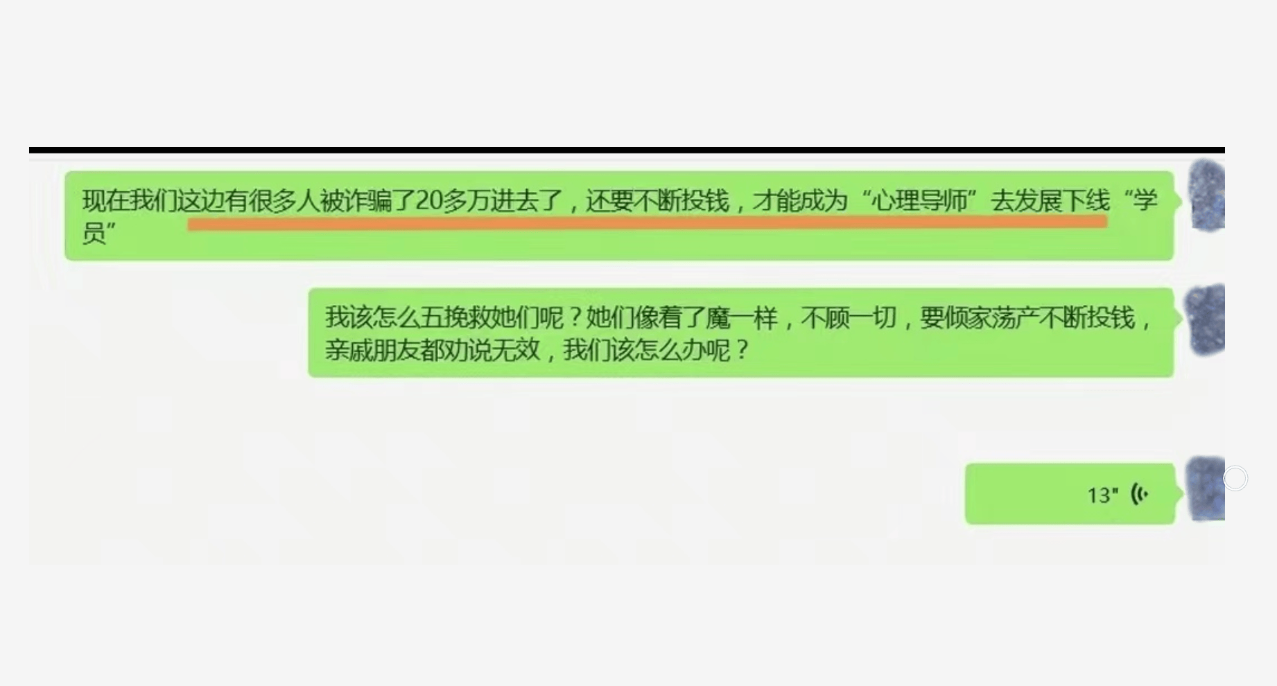 如果“传销”有段位,那么其中最难被打击也最难被解救的,当属“精神传销”有害培训。他们往往打着“心灵培训”、“领导力培训”、“灵修”等旗号,采取心理暗示、催眠洗脑等方式对学员进行精神控制。很多学员深陷其中,心甘情愿“拉人头”、发展下线、招募学员,成为对方聚敛钱财的“利刃”却不自知,往往造成家庭不睦甚至破裂,最后落得人财两空的下场。
