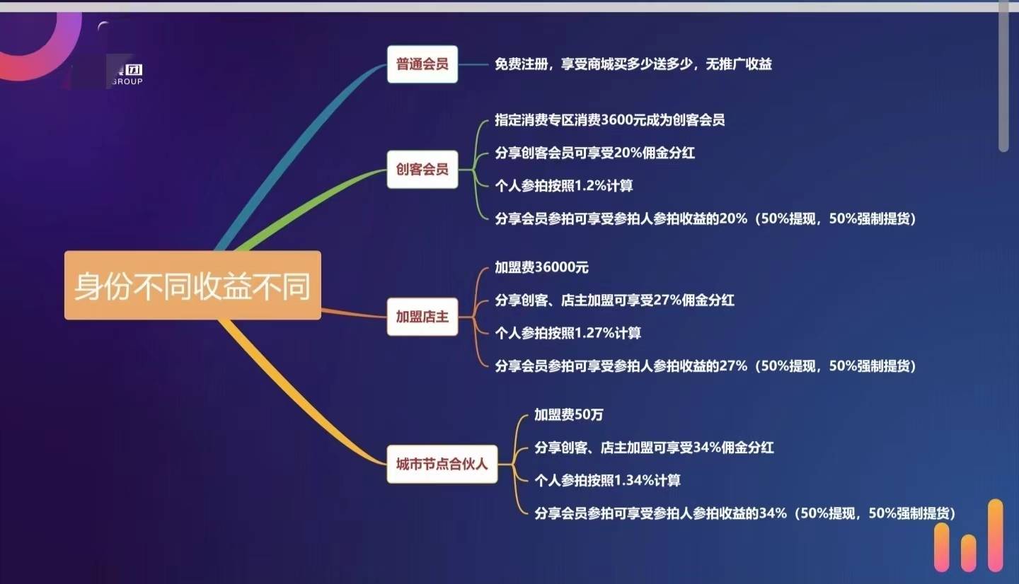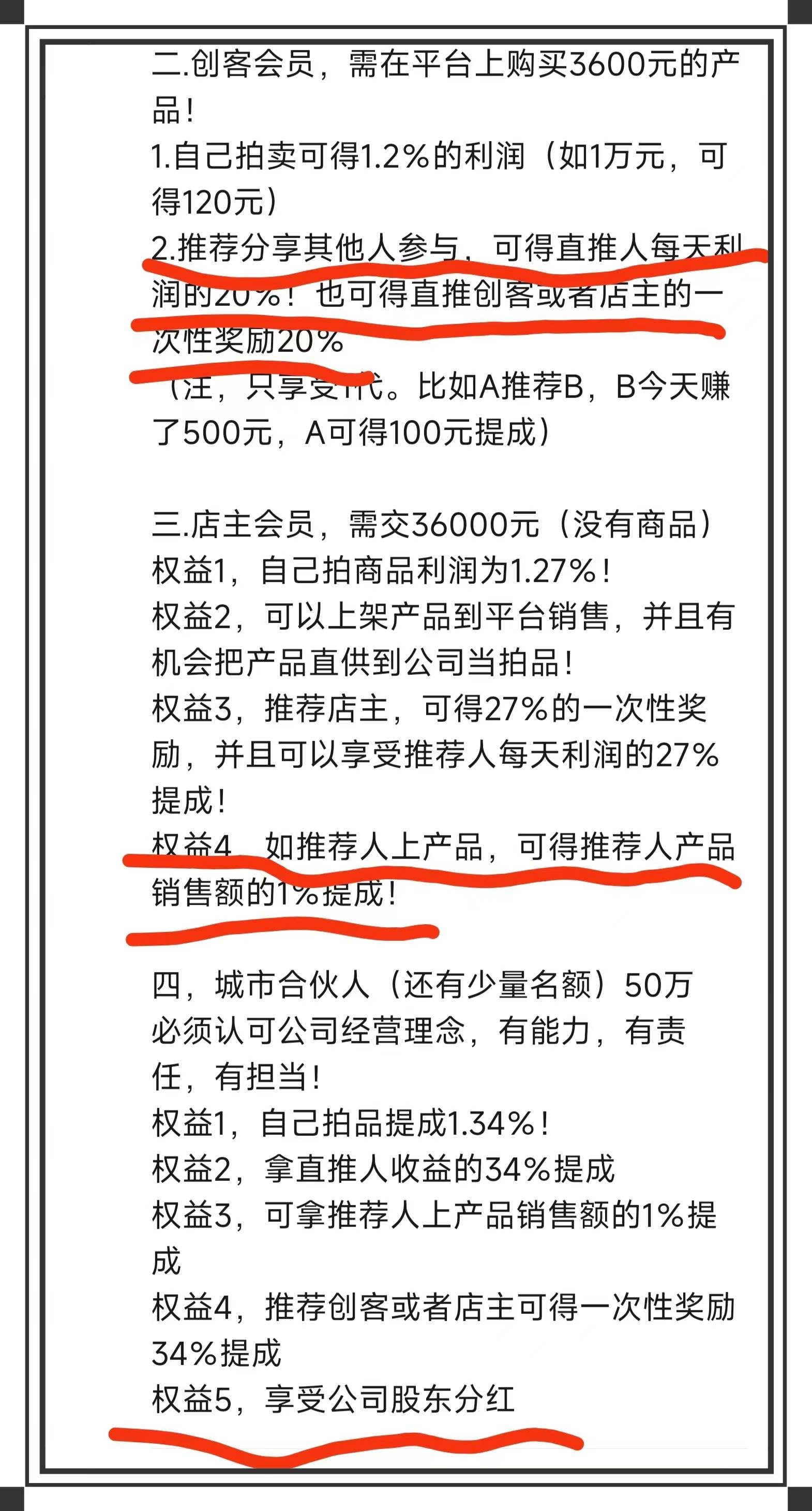 若是还想要获得佣金分红,就需要在商城消费3600元升级成为创客,除了个人参拍收益提高至1.2%以外,分享会员就可享受20%佣金,且还可额外享受新人参拍的20%收益。