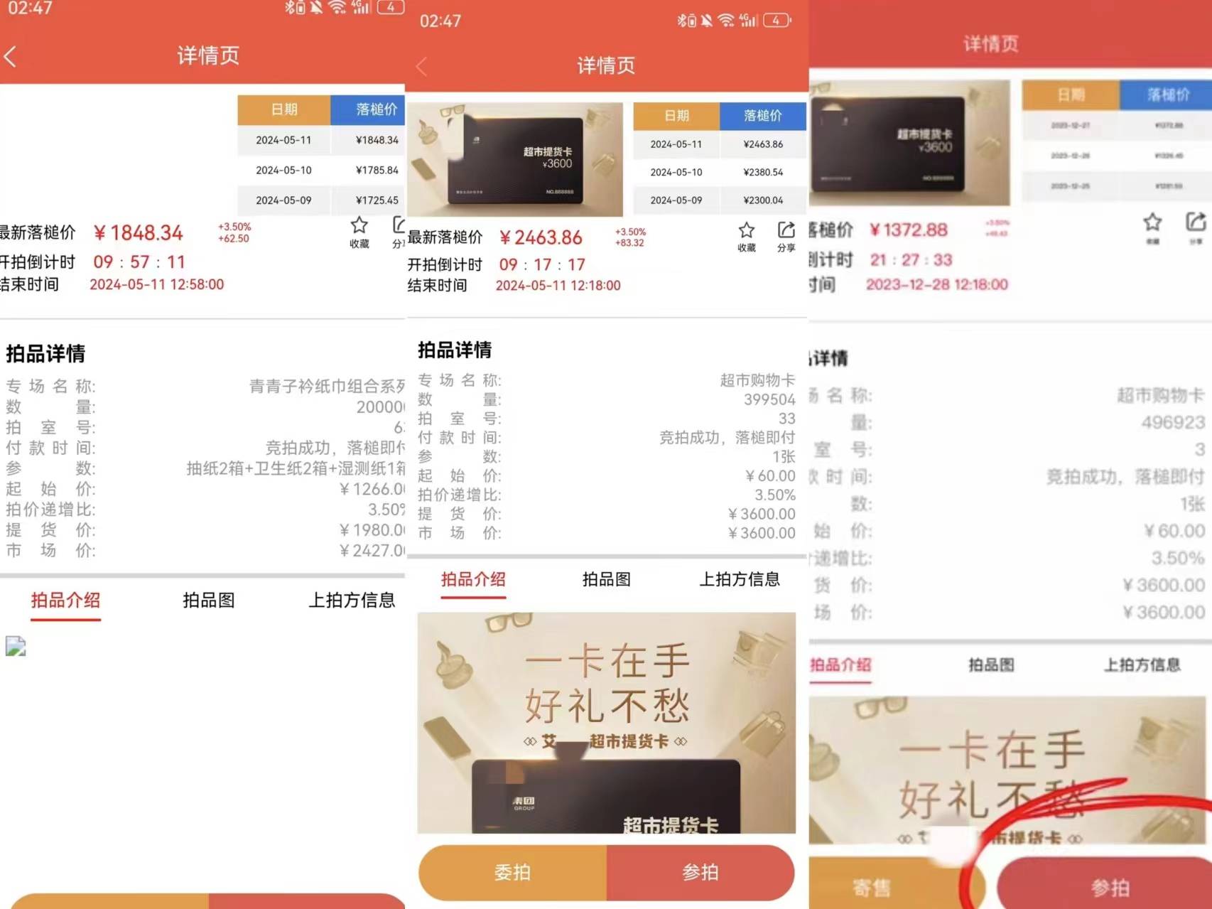 用户以“竞拍”的方式购买商品,除了赠送同等价值的积分外,还可以通过“寄售”将商品售出,以此来赚取差价。