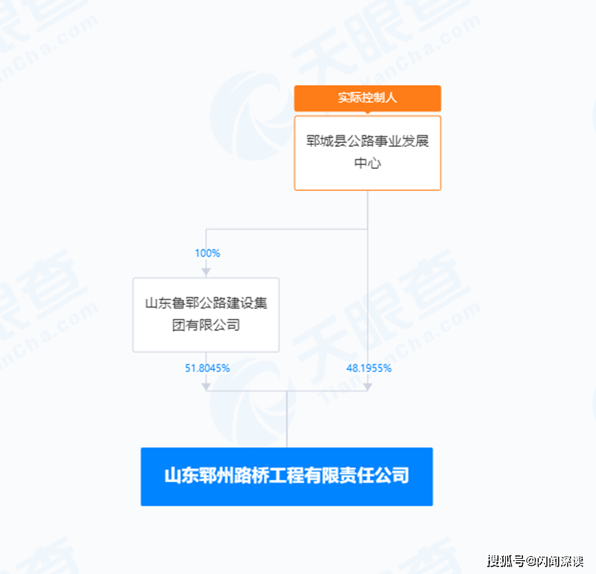 天眼查显示,招标人山东鲁郓公路建设集团有限公司持有中标人为山东郓州路桥工程有限责任公司51.8045%的股份,郓城县公路事业发展中心则持股48.1955%。