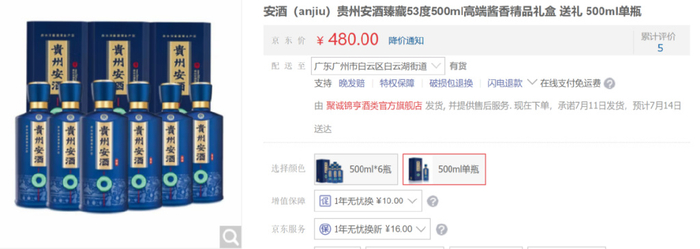 除了提供虚假统计资料被行政处罚以外,贵州安酒的实际销售价格也是倒挂现象严重。据了解,贵州安酒臻藏53度500ml高端酱香精品礼盒装,在官方的原价中,贵州安酒臻藏是690元一瓶,而在京东平台上,其价格为480元。