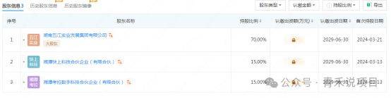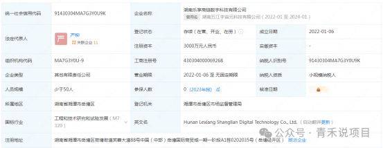 企查查公示系统显示,湖南乐享商链数字科技有限公司成立于2022年1月6日,法定代表人为严柳,注册资本为3000万元人民币,实缴0元,大股东为湖南五江实业发展集团有限公司(占股70%)。