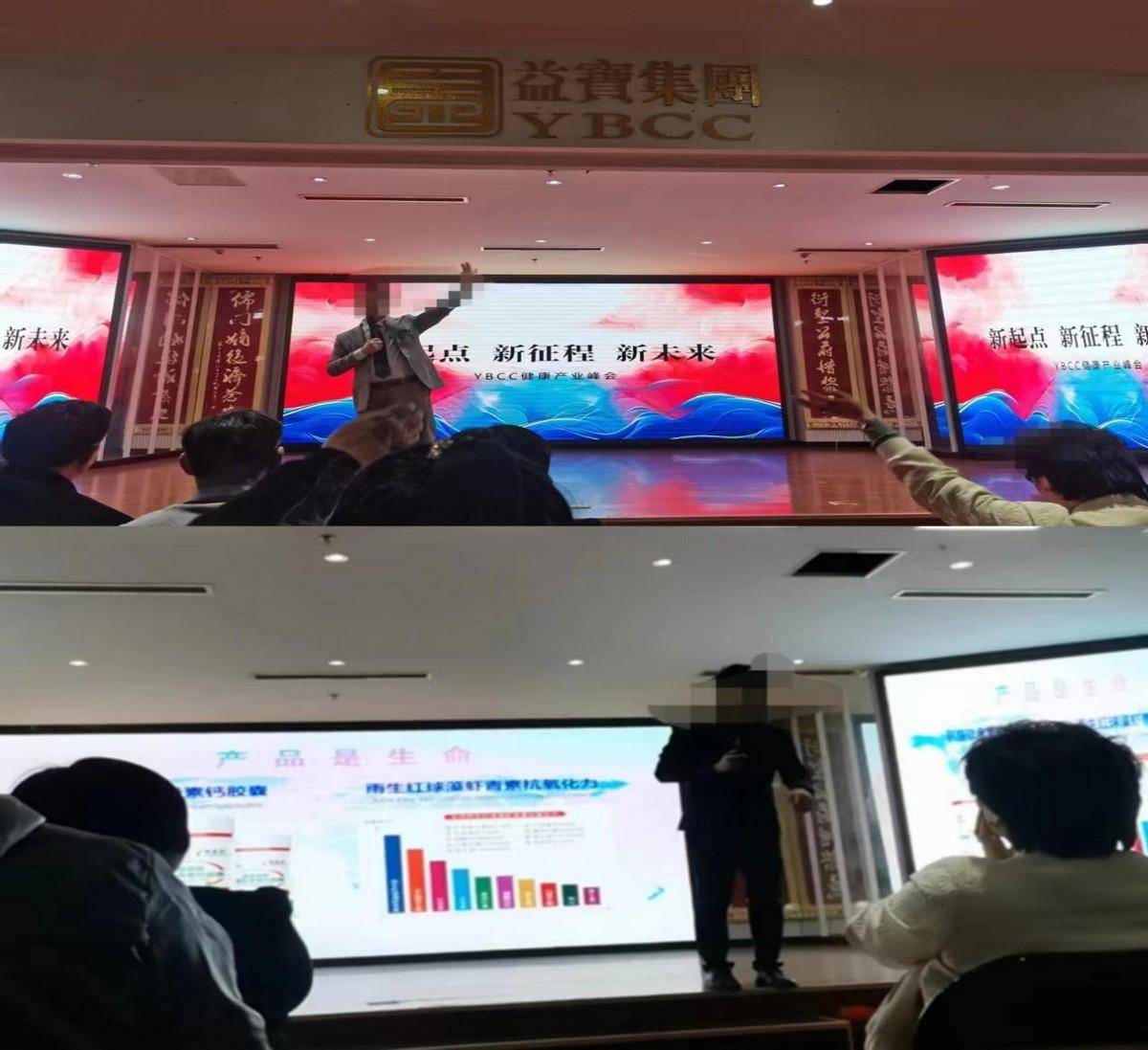 为了了解更多事实真相。今年3月,记者来到位于山东曲阜的益宝生物总部进行调查,在会议现场,讲师先是讲解了公司的数款爆款产品,包括硫酸软骨素、红球藻虾青素、小球藻、清清饮以及小薇水等。