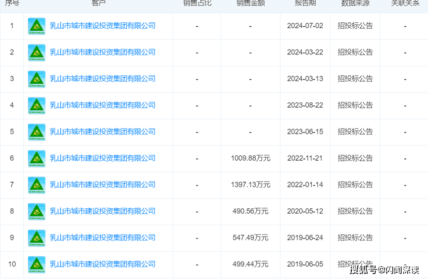 天眼查显示,两者之间有22条销售数据,最早的合作可以追溯至10年前的2014年。同时,乳山市市政建设工程有限公司与存利害关系的关联企业也有中标的现象。