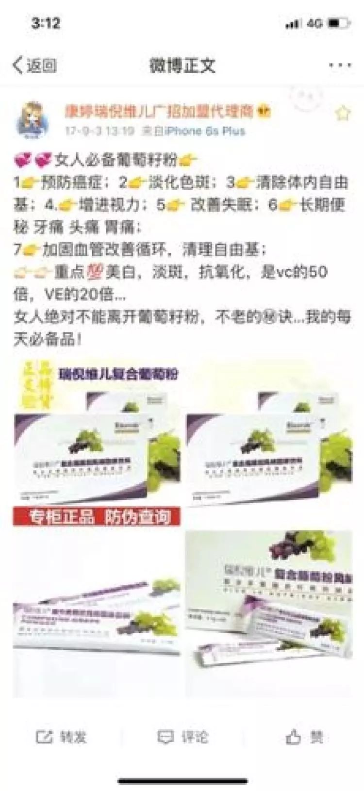 ↑康婷推广人员推销称葡萄籽可预防癌症