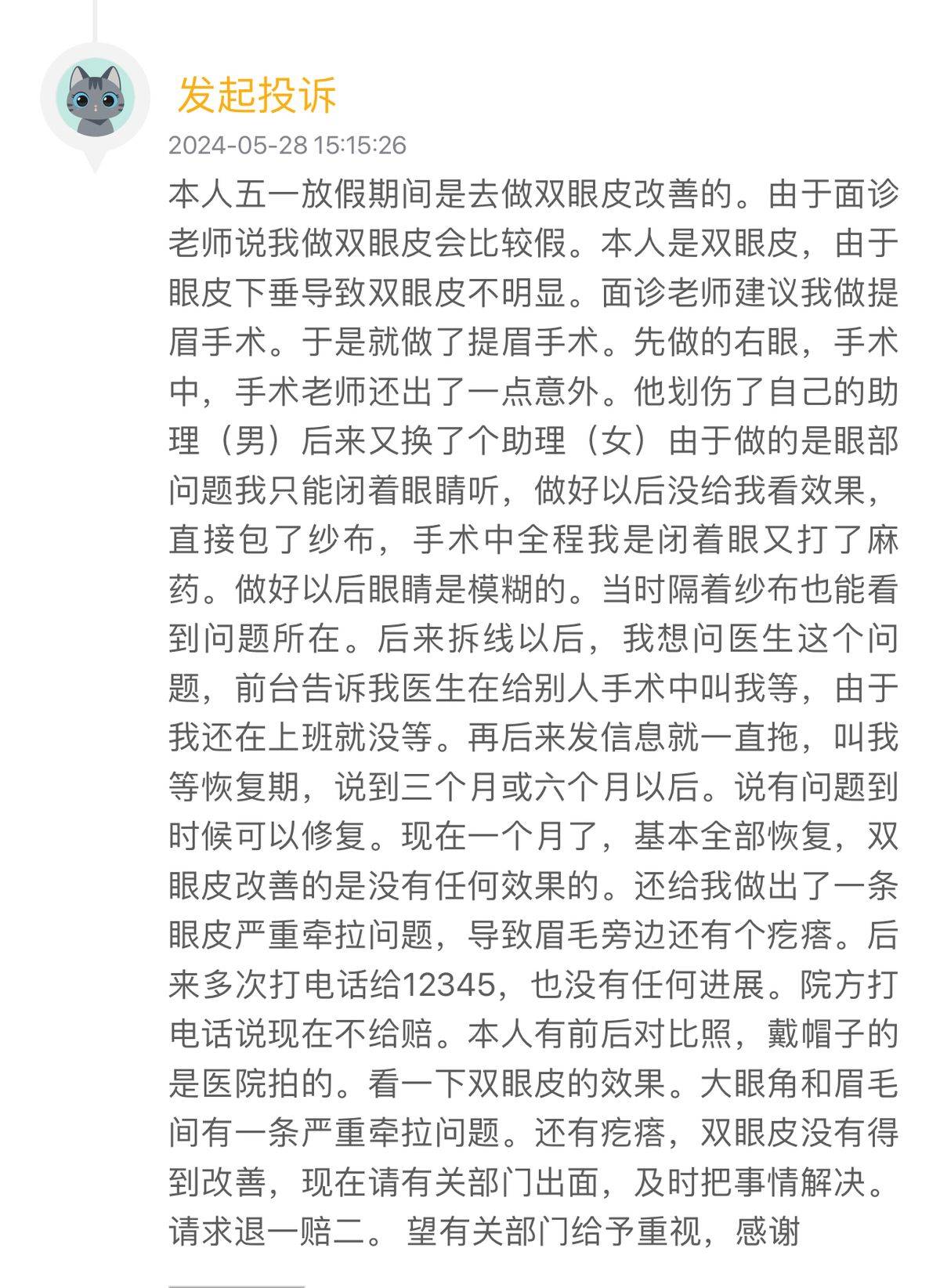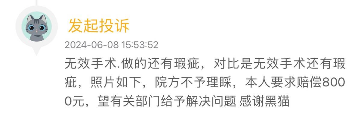 投诉者还提到,自己在医院遭遇的不仅仅是经济上的损失,更有时间和精力的浪费。消费者对医院的服务态度和解决问题的方式感到非常失望,认为医院的行为严重损害了消费者权益。