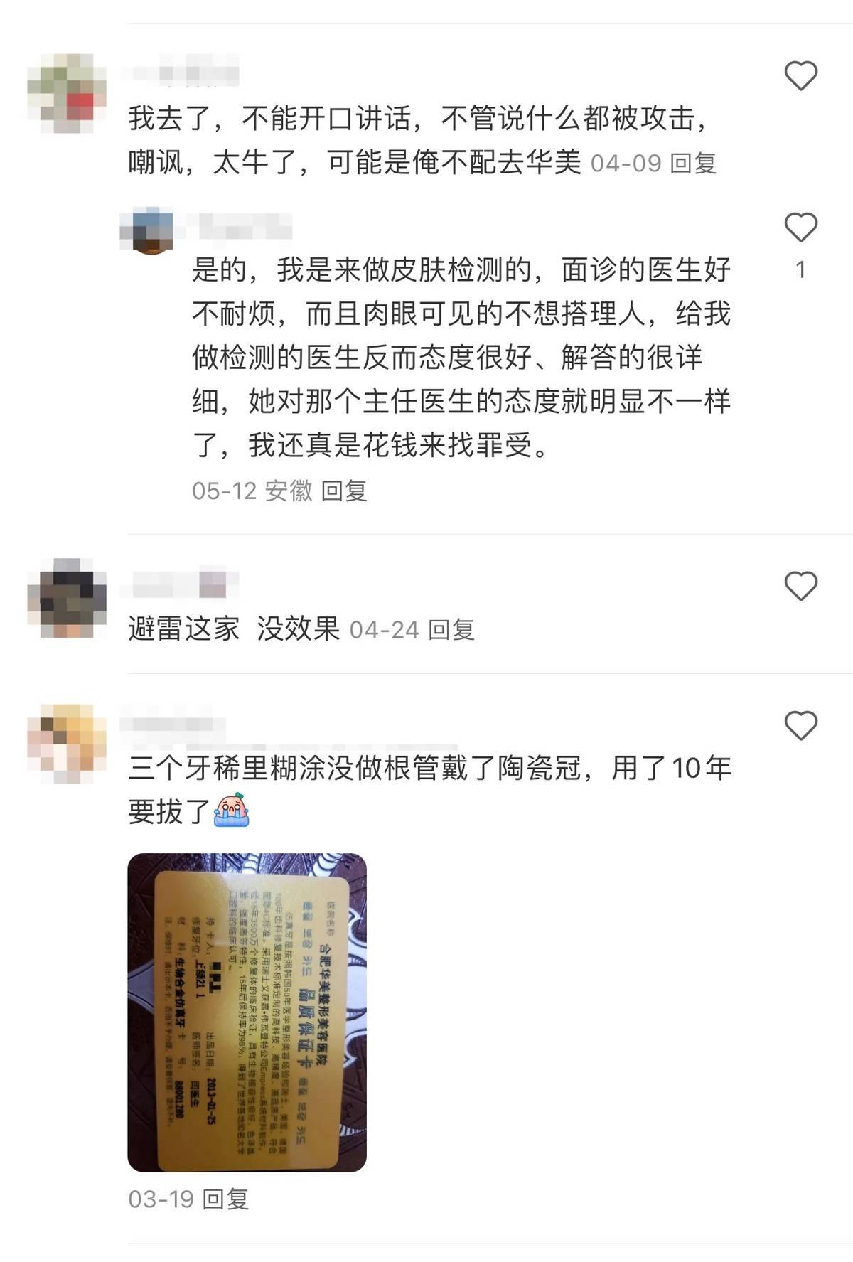 巧合的是,在小红书另一篇评价的帖子里,也有大量消费者在吐槽合肥华美整形。甚至有消费者直接晒出了在该医院办的卡。