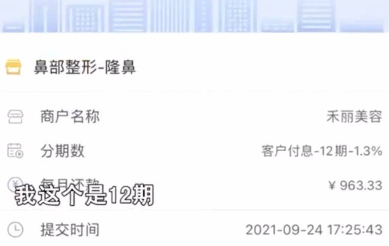 2021年9月,一位18岁的女孩小何长沙禾丽医疗美容医院接受了隆鼻整形手术。手术费用共为两万七千元,医院推荐了医美贷款方案,小何接受了,但是最终却多贷了一笔一万元的贷款。