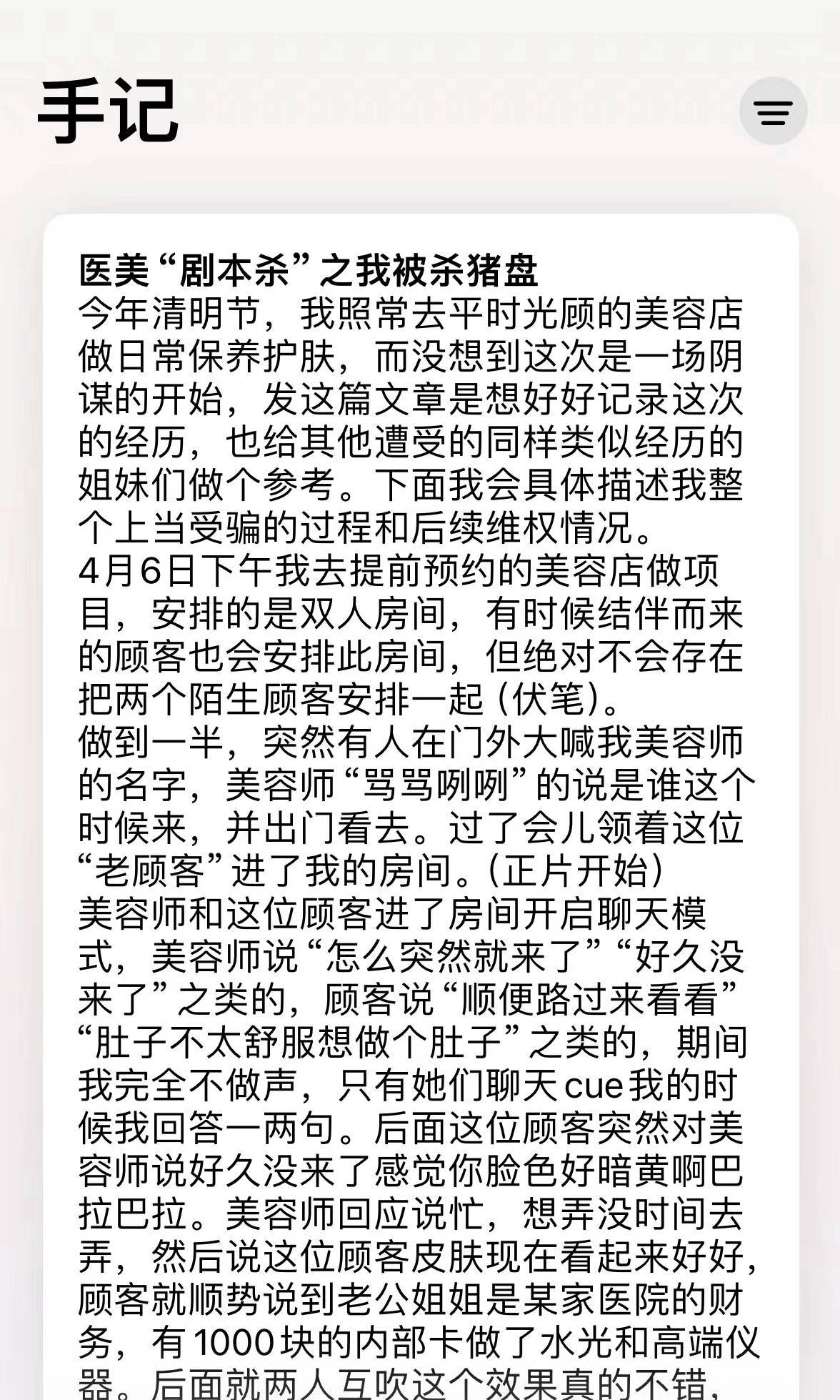 今年四月,有消费者在小红书爆料了自己被医美剧本杀的全过程。