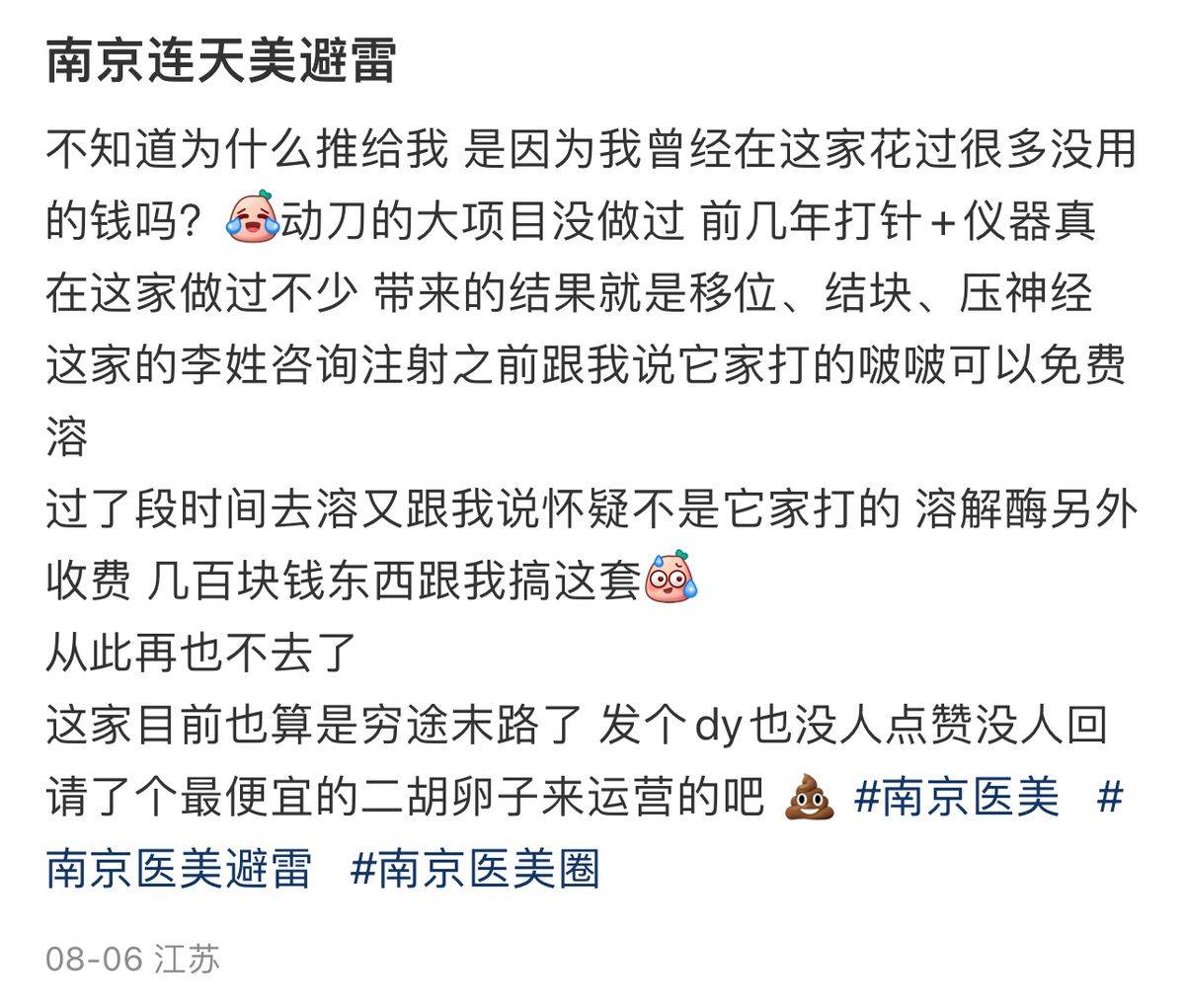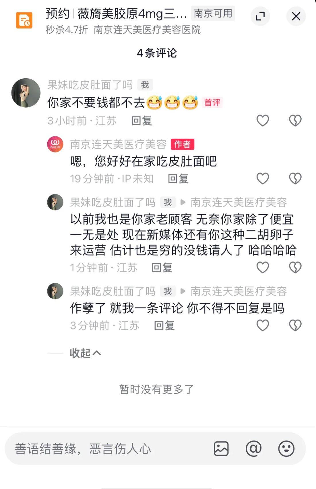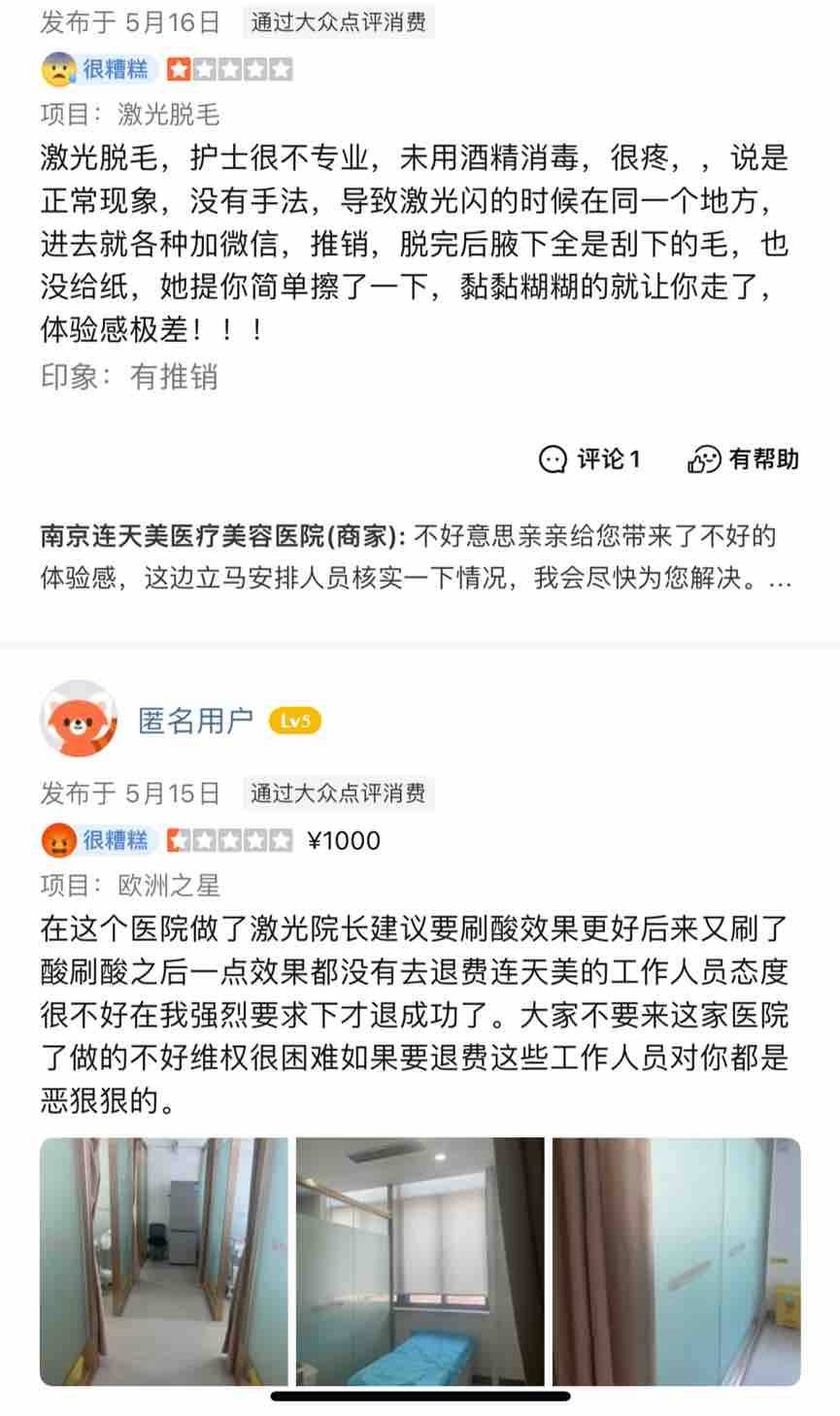 继无证行医之后 南京连天美美容医院再次被消费者口诛笔伐