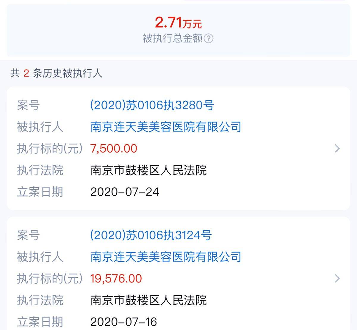 此外,南京连天美美容医院有限公司历史行政处罚并不少。