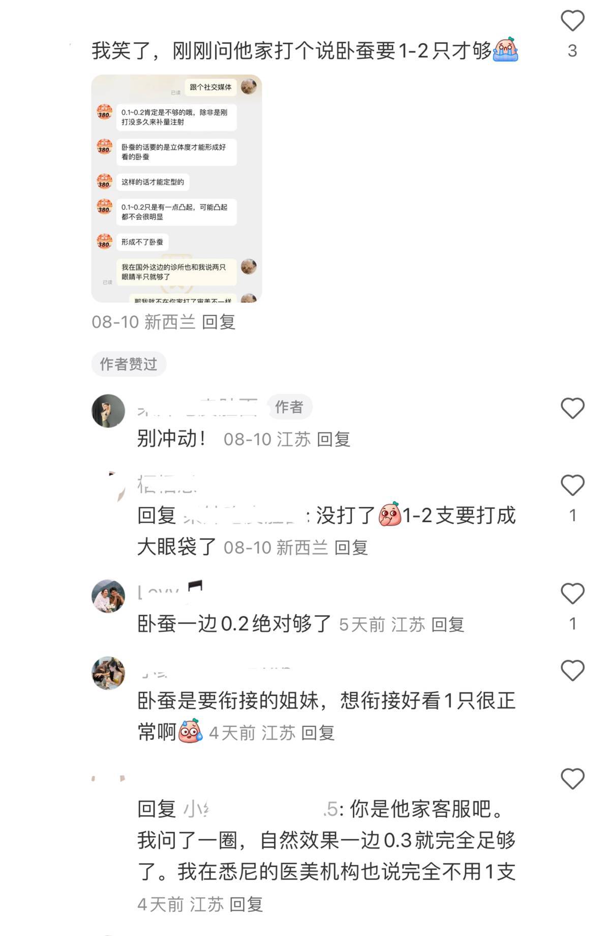 该消费者的吐槽引发不少网友的共鸣,有网友回复,该机构在推销卧蚕注射材料时,剂量过大的问题。