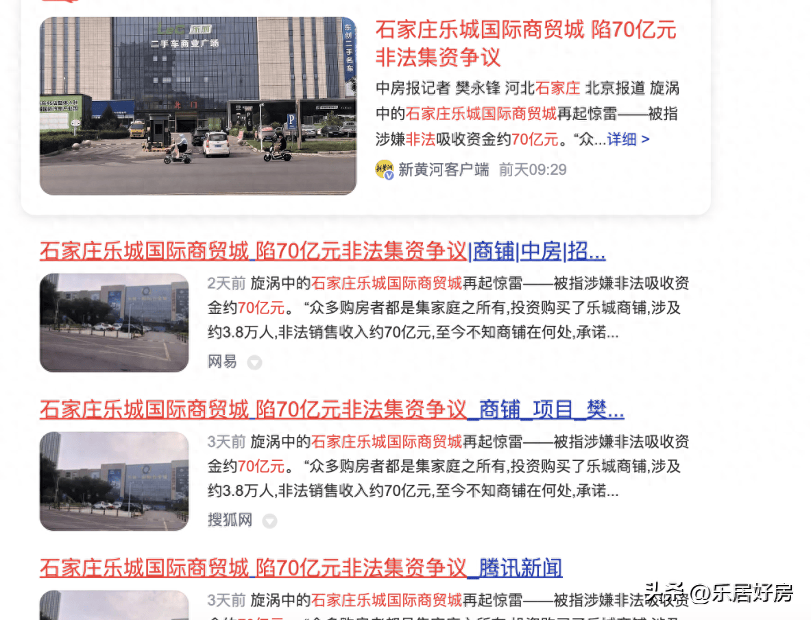 据人民网领导留言板信息显示,直到2023年11月依旧有业主在投诉石家庄乐城国际贸易城退款迟迟不到位的问题。而今,石家庄乐城国际贸易城又被爆出涉嫌非法吸收资金,这个项目的业主真是还有很长很长的维权之路要走。