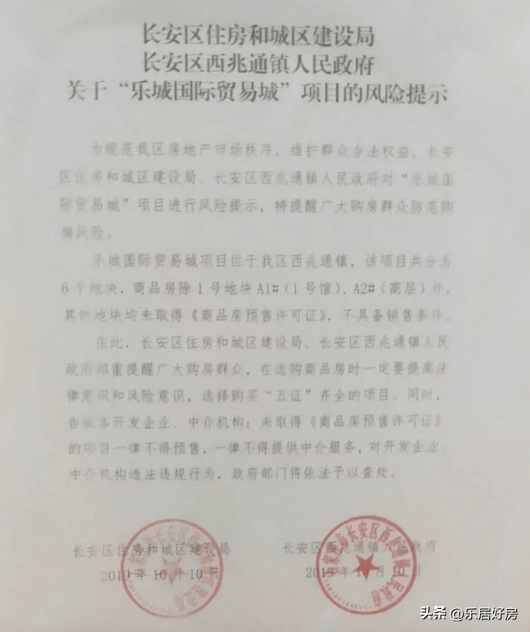 随后,人们进一步发现,这个大约从2014年就开始大面推广甚至售卖的石家庄乐城国际贸易城项目,竟然五证不全。于是,大约2019年的时候该项目发出风险预警提示。
