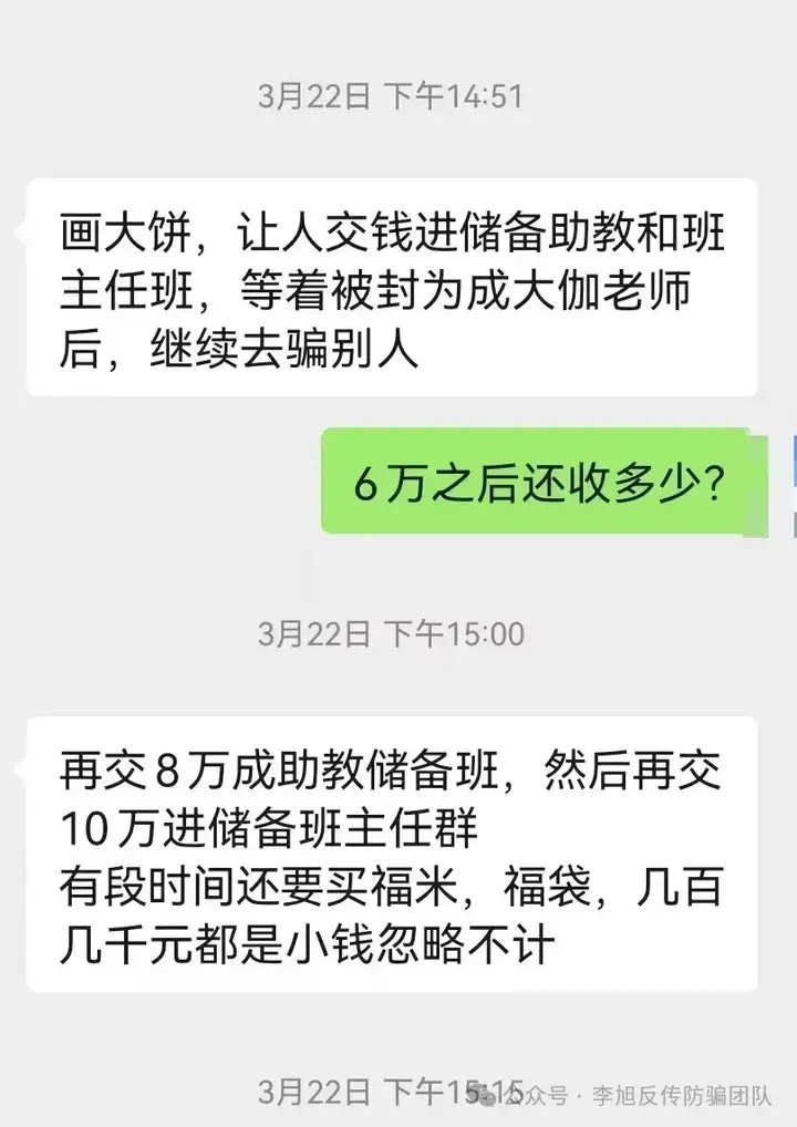 这时,“老师”会告诉学员交纳8万元可以进入“助教储备班”成为“助教”,交纳10万元可以进入“储备班主任群”成为班主任,后续可获得相应的学费提成。