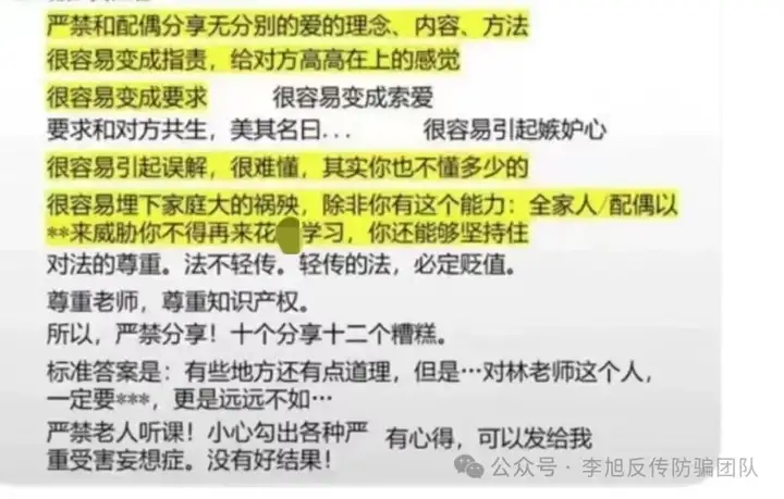 并且,“老师”还会不断向学员灌输“严禁与配偶分享”、“即使全家人都来威胁你不要学习,你也要能够坚持”的思想,这也使得很多学员不顾身边人的劝阻,越陷越深,这也为“解救”增加了难度。