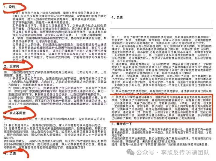 令张先生更加难以接受的是,对于一些没有钱的学员,学院有一套完整的“话术”流程,一步步指导老学员如何“纳新”。