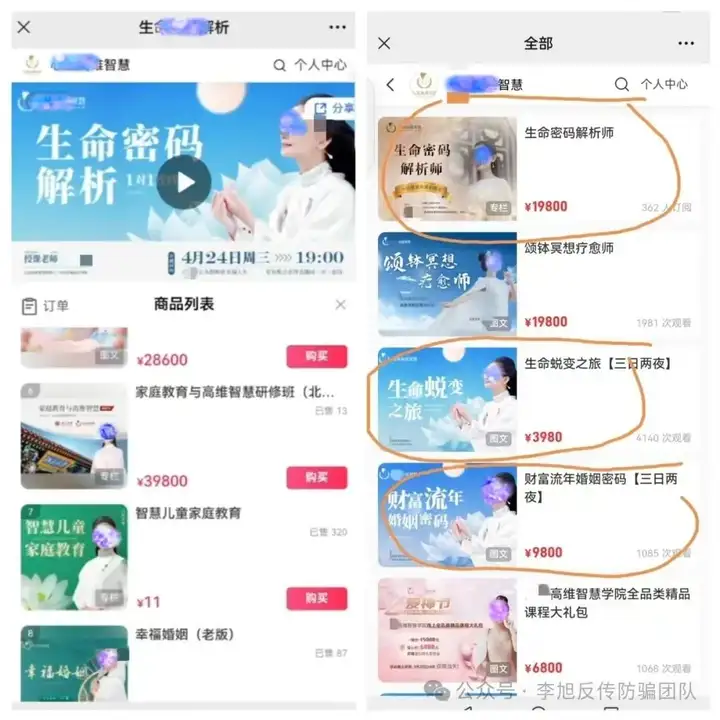 张先生还发现,课程中“吕某”会通过分析学员“命格”,号称命中有“大爱”,以十分适合分享“大爱”为由,不断诱导学员花钱参与更高阶的课程,并加入“智慧学院”成为“天使老师”。