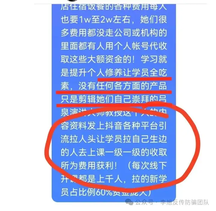 新学员参与课程时,对方说是免费,但中途会采取各种方式游说学员以为自己投资为由,交纳3万-10万元不等的费用。课程结束后,还会收取1万-2万元的酒店住宿费和餐饮费。