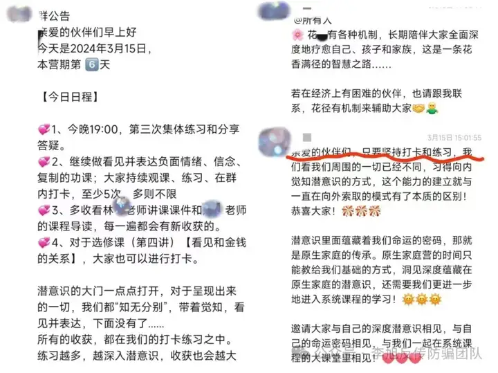 如果“传X”有段位,那么其中最难被打击也最难被解救的,当属“精神传X”有害培训。他们往往打着“心灵培训”、“领导力培训”、“灵修”等旗号,采取心理暗示、催眠洗脑等方式对学员进行精神控制。很多学员深陷其中,心甘情愿“拉人头”、发展下线、招募学员,成为对方聚敛钱财的“利刃”却不自知,往往造成家庭不睦甚至破裂,最后落得人财两空的下场。