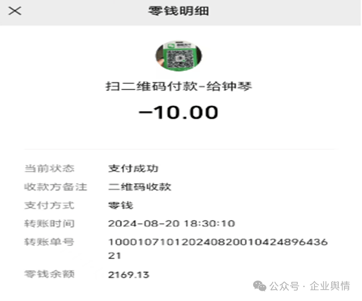 不仅如此,记者现场购买了一罐在四川南充生产的标有“燕京”品牌的啤酒,为此花费10元。记者通过微信支付时发现,收款方竟然是一个名叫“钟琴”的私人账户。