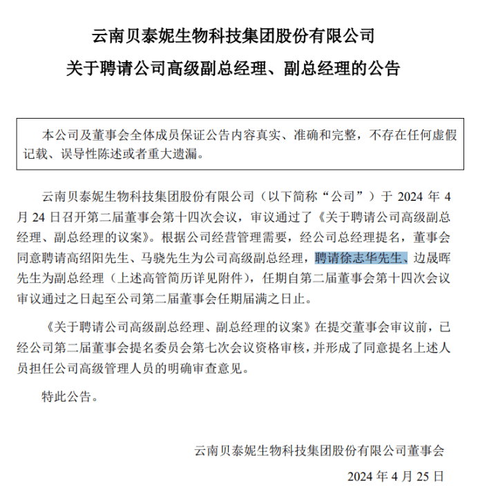 公开信息显示,徐志华于2023年10月从狮头股份总裁任上辞职之后,加入贝泰妮集团,担任公司总裁营销助理,并于今年4月升任贝泰妮副总经理。