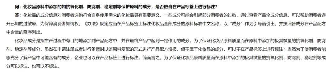 根据国家药监局过往说明,为了保证化妆品原料质量而在原料中添加的极其微量的抗氧化剂、防腐剂、稳定剂等成分可以在产品标签上标注,也可以不标注。