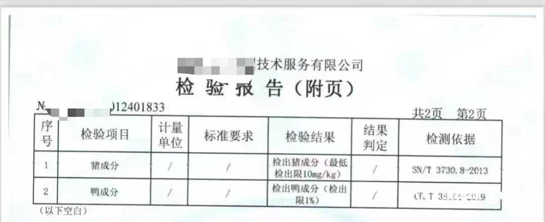 羊肉中被检出猪成分、鸭成分